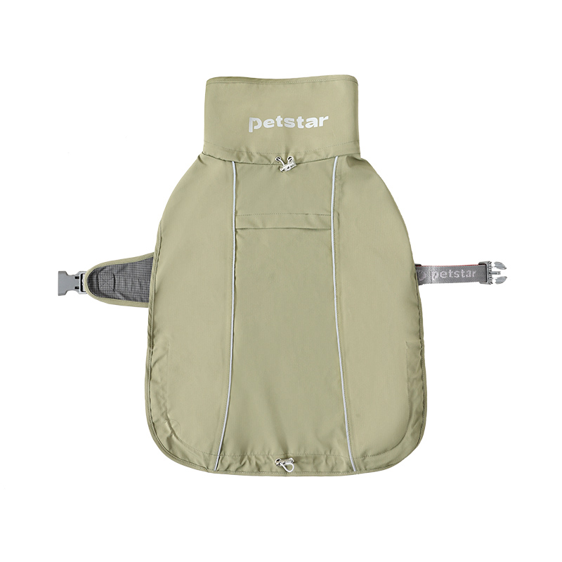 Petstar 户外冲锋衣狗狗轻便可牵引防水衣服 绿色 L-背长45cm【建议14-17斤】