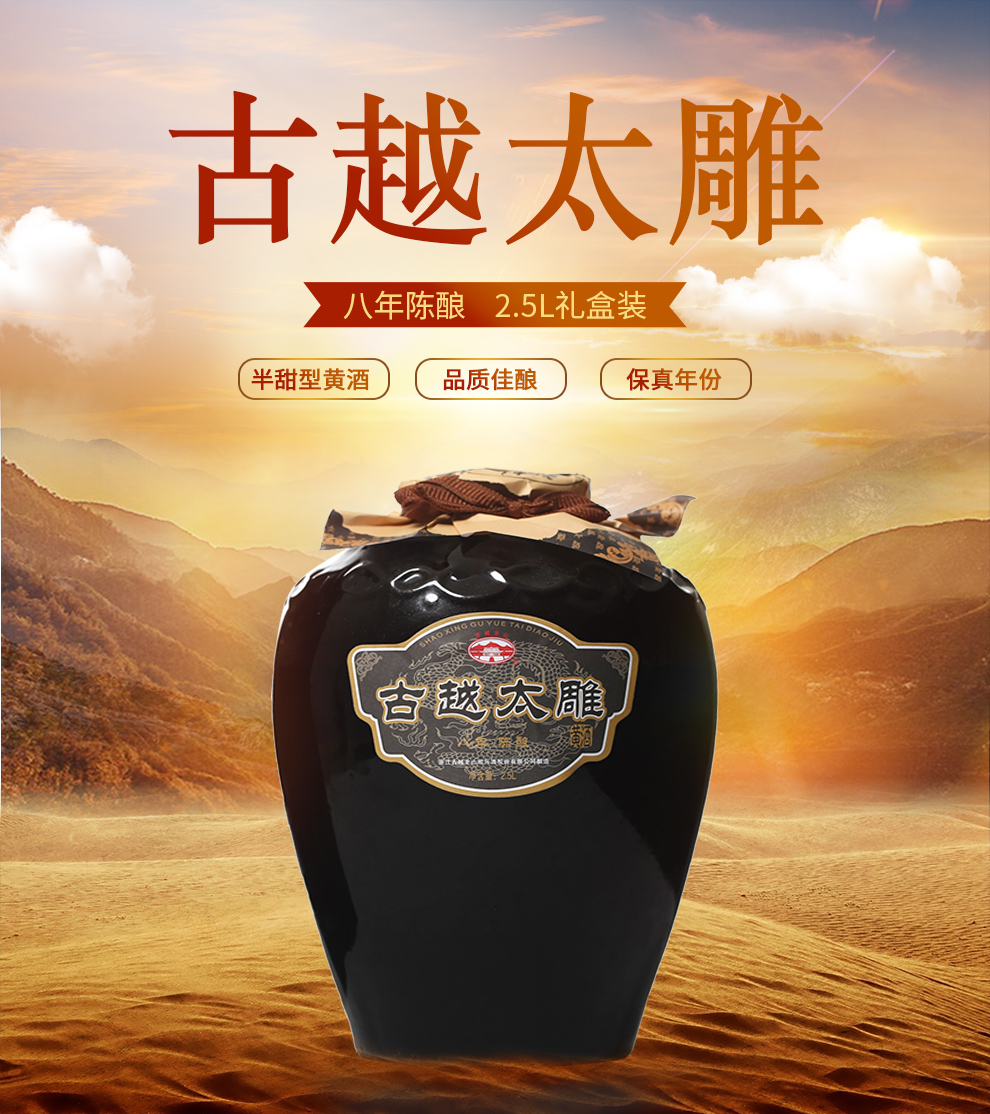古越龙山太雕八年半甜型绍兴黄酒2.5L 单坛装 2.5L*1