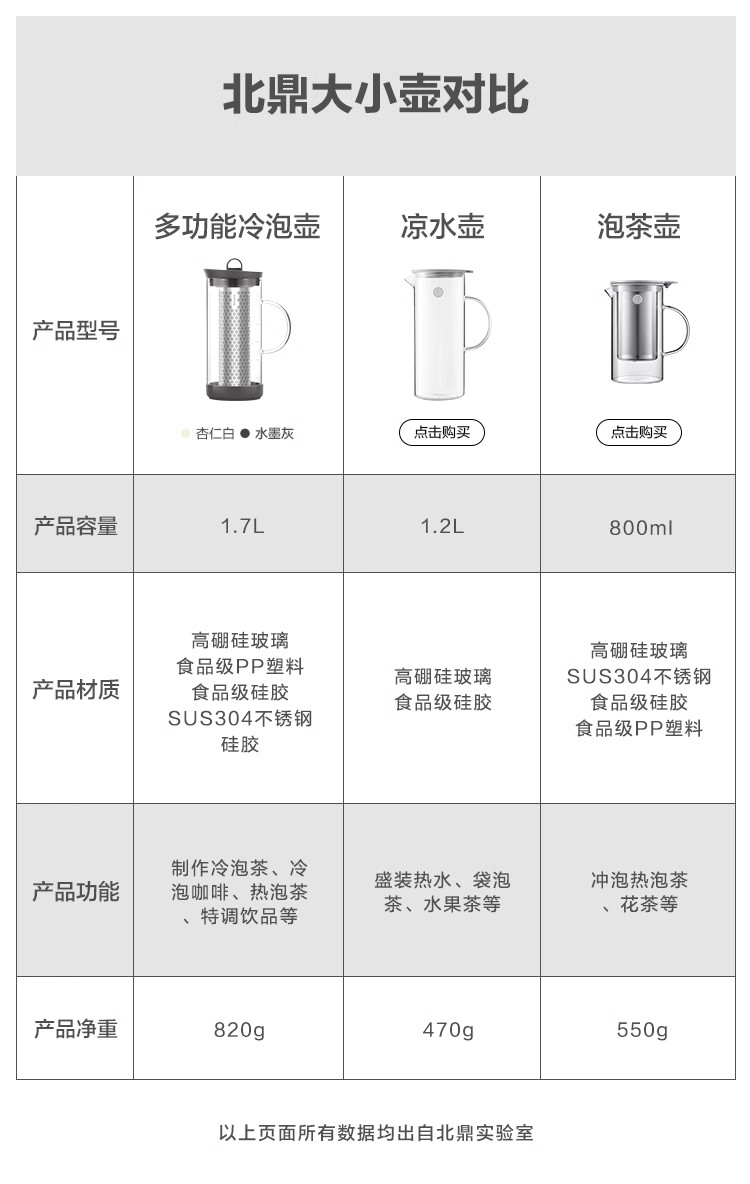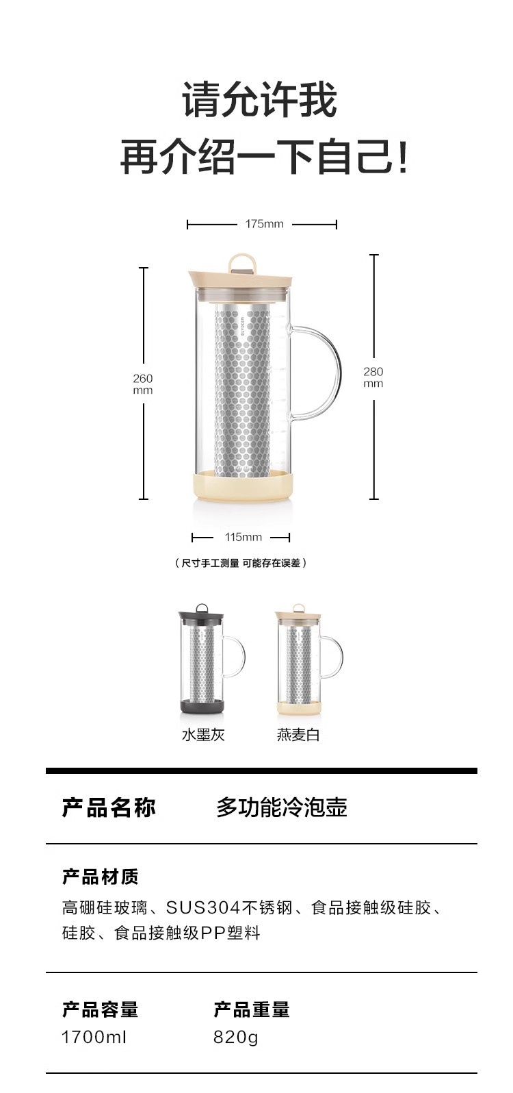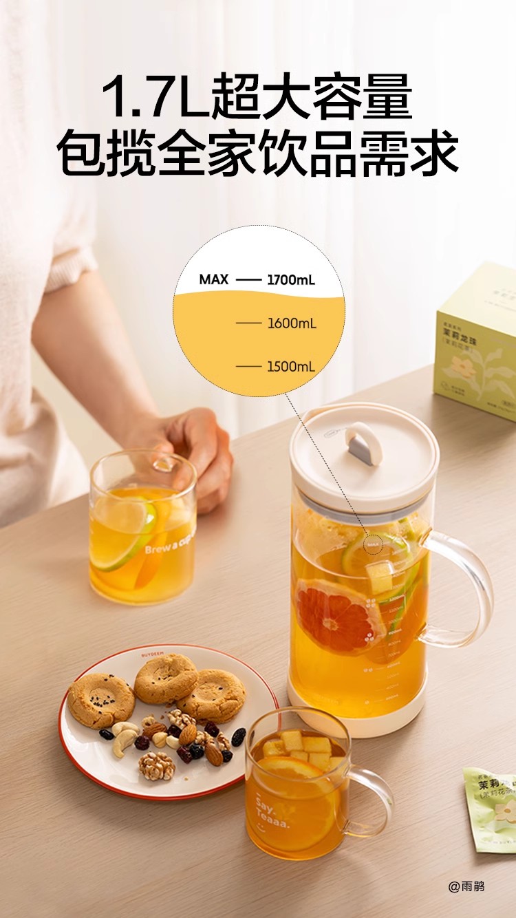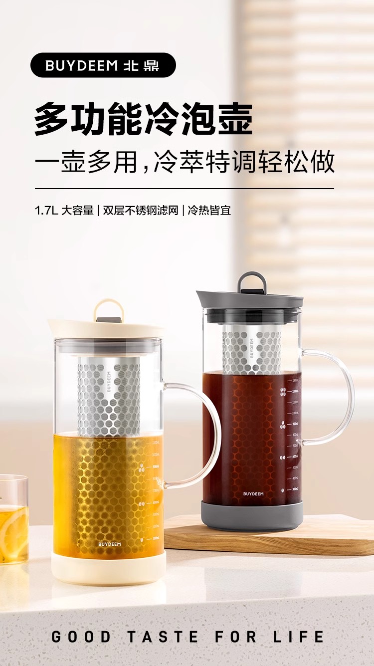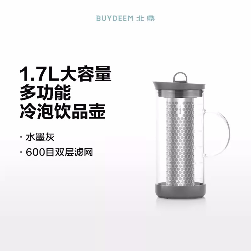 北鼎(Buydeem)泡茶壶 家用大容量多功能冷泡壶杏仁白1700ml 随机颜色