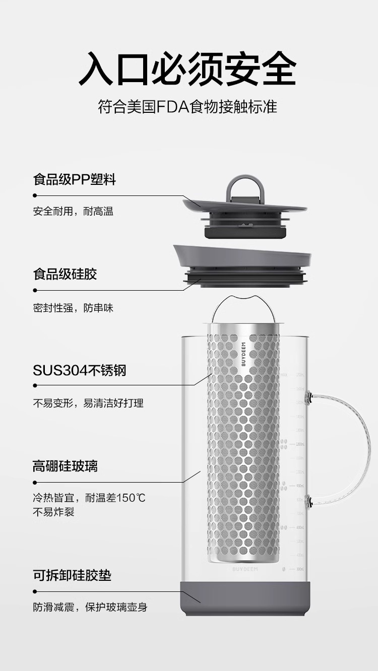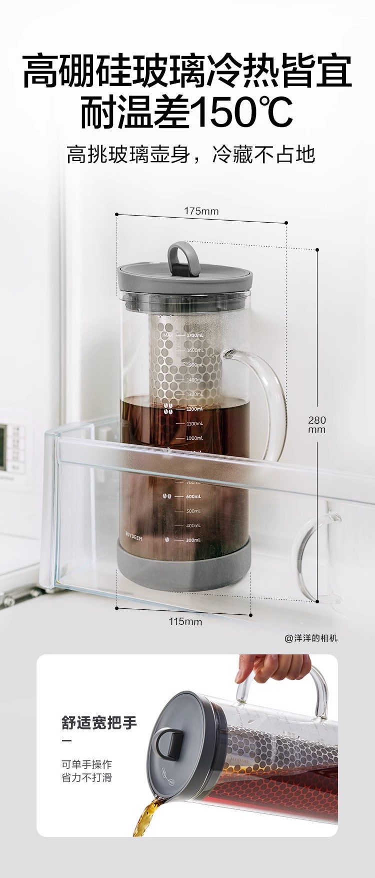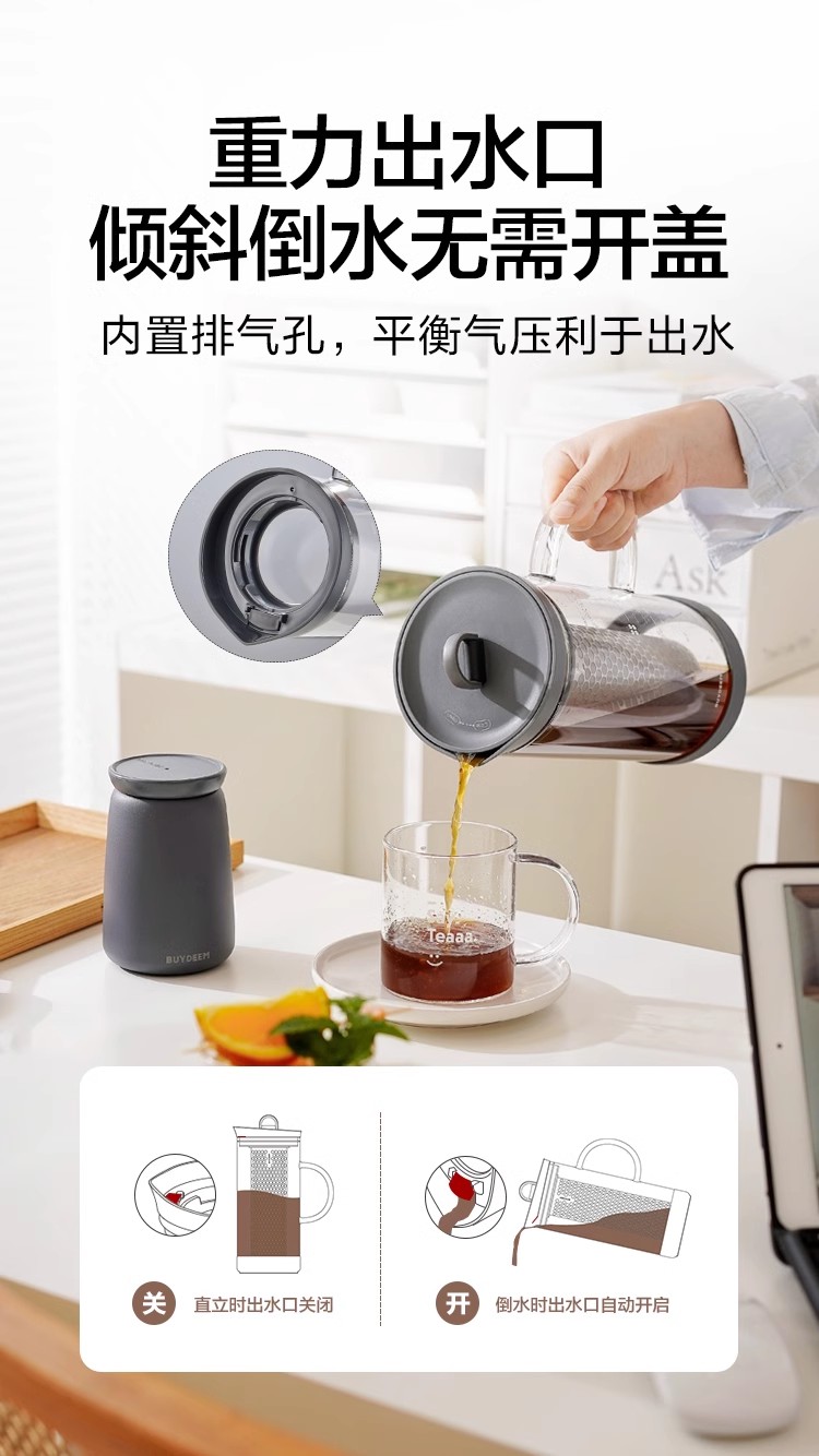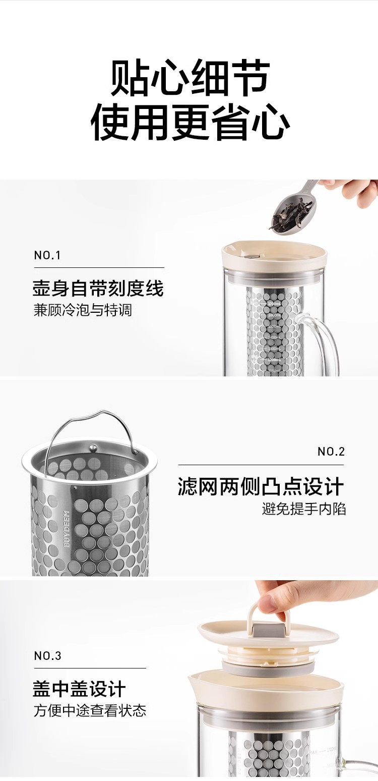 北鼎(Buydeem)泡茶壶 家用大容量多功能冷泡壶杏仁白1700ml 随机颜色