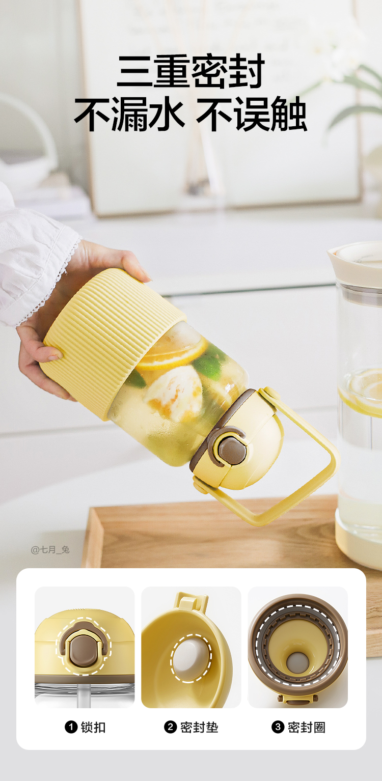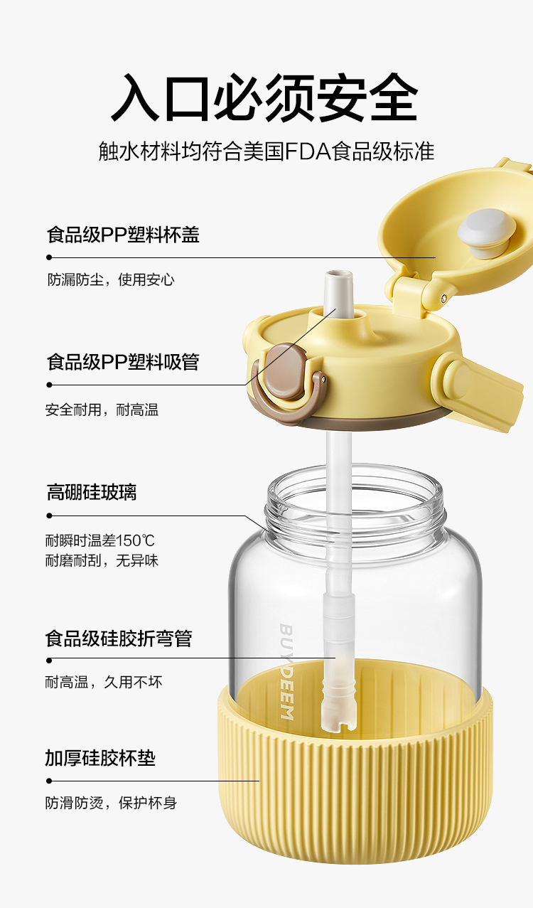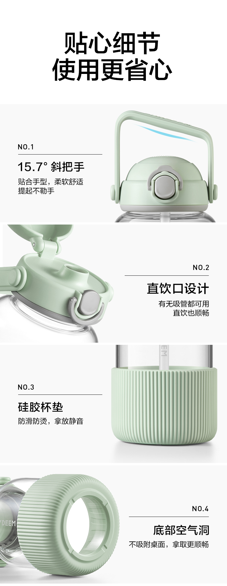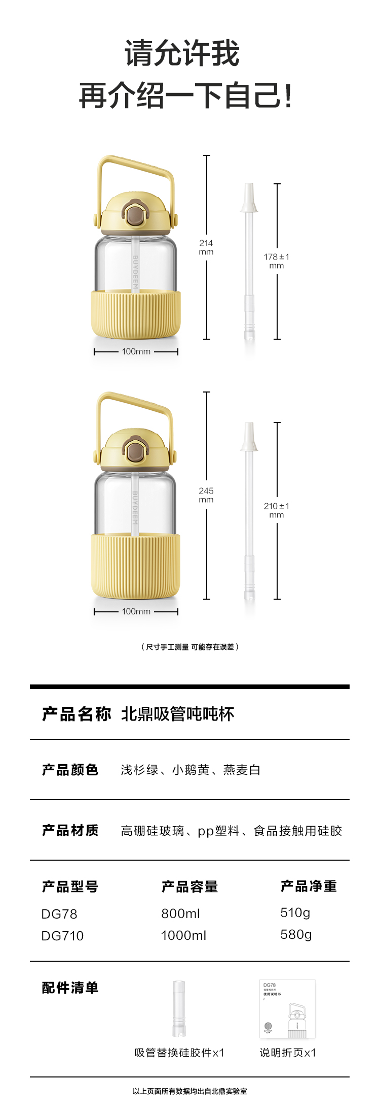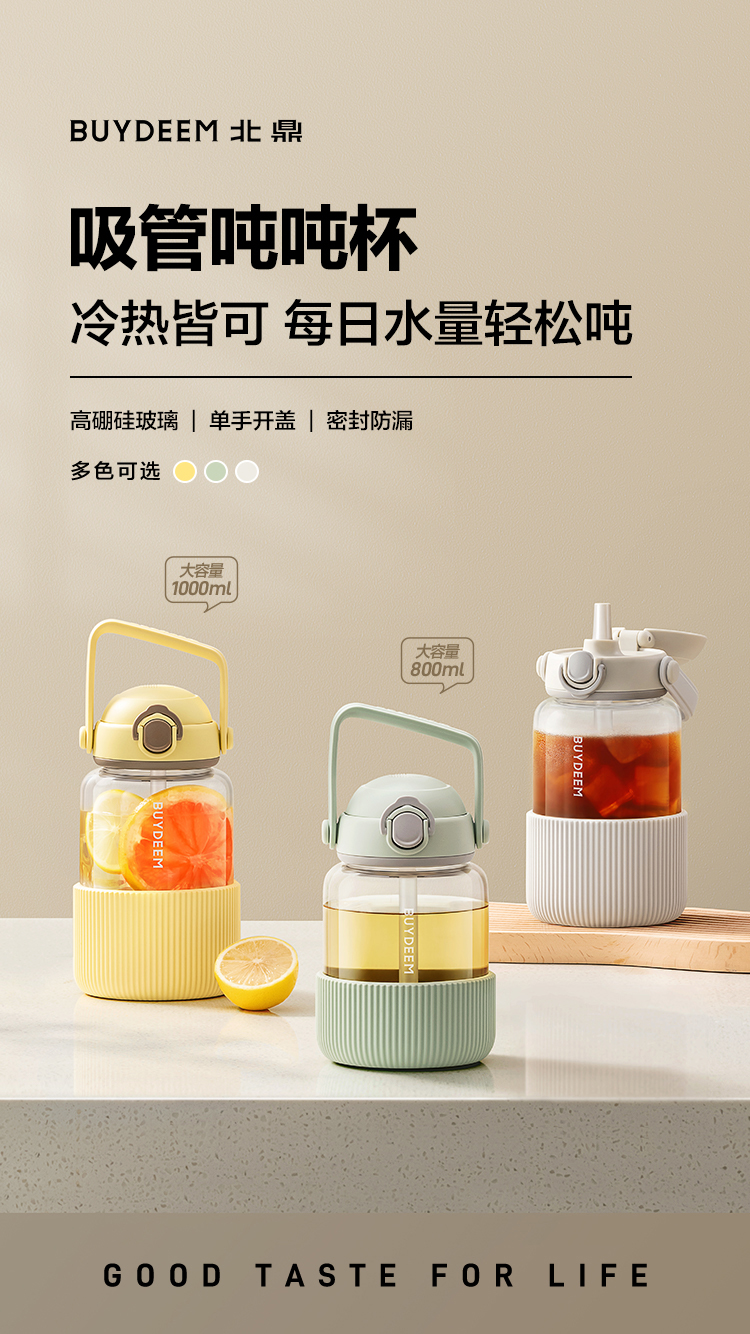 北鼎(Buydeem)玻璃杯吨杯桶吸管杯户外运动便携1000ML大容量 随机颜色