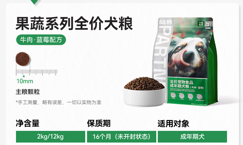 帕特 全价成年期犬粮牛肉与蓝莓 2kg