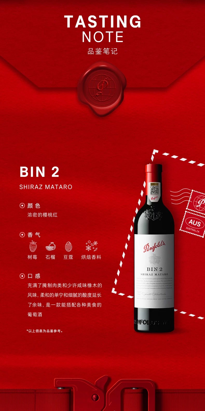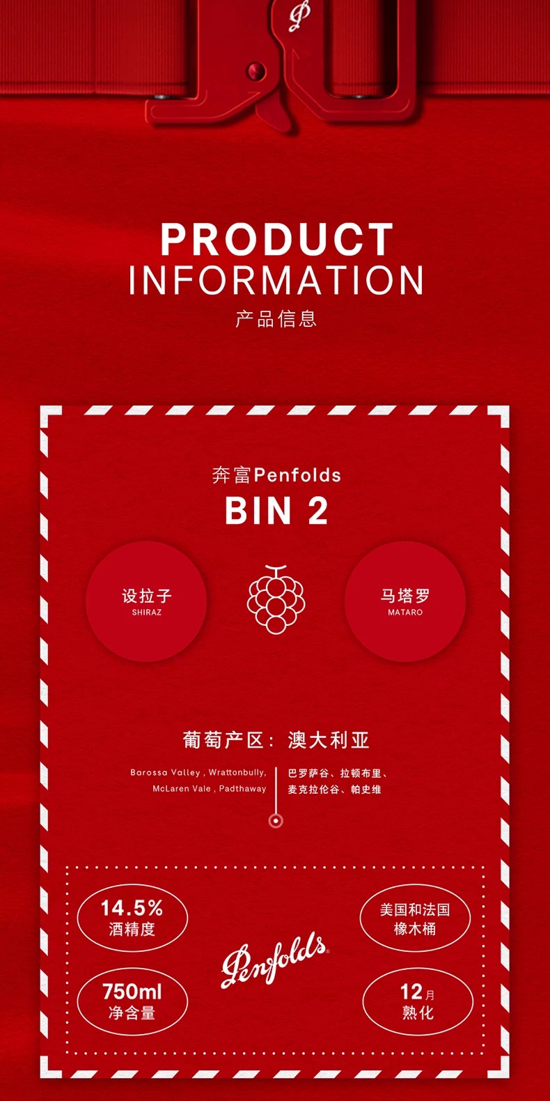 奔富(Penfolds)Bin2设拉子马塔罗红葡萄酒 14.5%vol 750ml*1