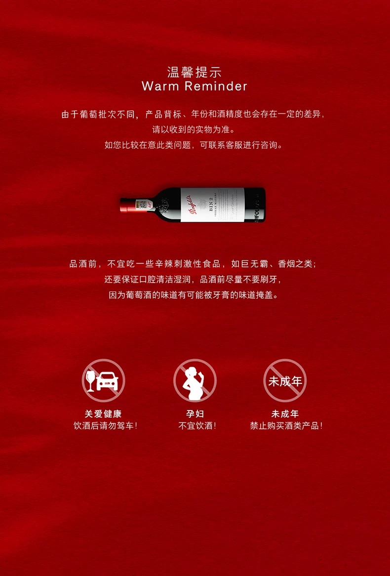 饮酒危害健康,合理饮酒,切勿过量;未成年人请勿购买酒类商品;孕妇、哺乳期妇女请勿饮酒;酒后请勿驾车。