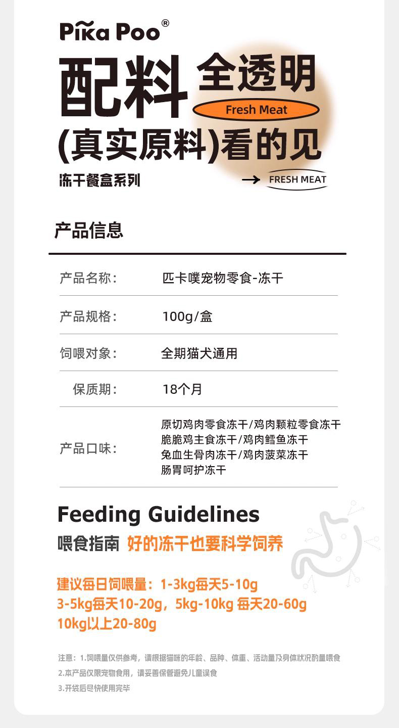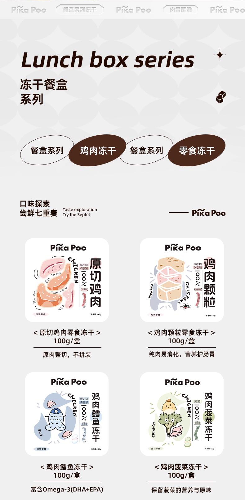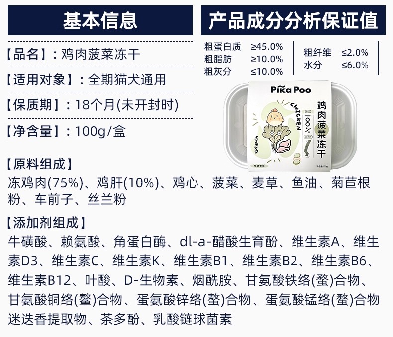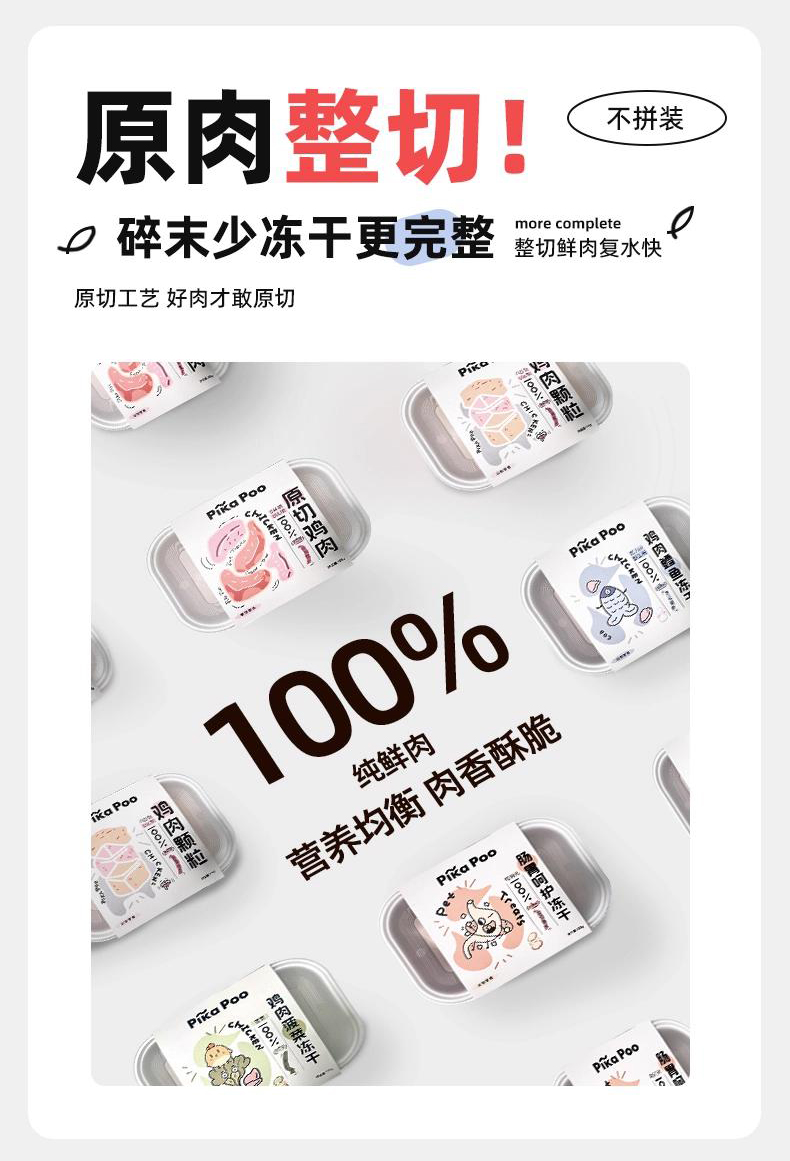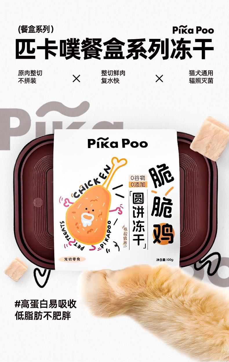 匹卡噗 宠物零食冻干餐盒装100g*6盒 鸡肉+菠菜+麦草